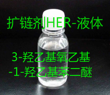 作為TDI/MDI系列聚氨酯制品的擴鏈劑,廣泛應用于聚氨酯粘合劑、涂料、密封膠、彈性體、PU泡沫、氨綸、體育設施等領域。該產品尤其適合于中、高硬度的制品。與固體HER相比具有使用方便、用量少的特點。并且,由液體HER-L制成的聚氨酯制品除具有由固體HER制成的產品所具有的常規性能外,還具有優異的抗張強度、延伸率、柔軟撓曲性能等特點。該產品可溶于二甲基乙酰(DMAC)。